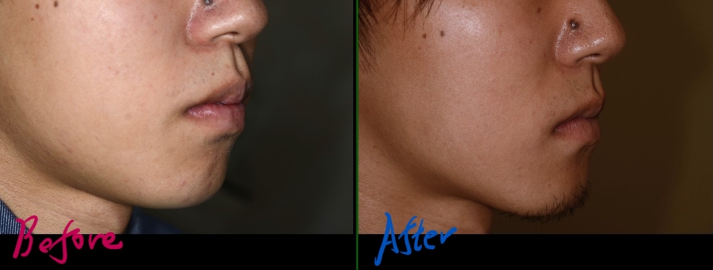 治療後には、オトガイ部にあった梅干し状のシワが無くなっていることが分かります